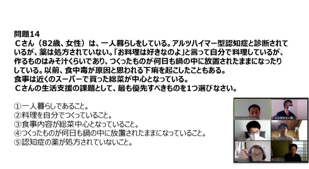 今回も「事例を用いた演習」を行いました。 ― 認知症利用者とその家族への支援 ―