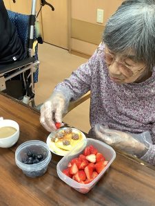 生地は職員が目の前で焼きました。みなさん興味津々の様子でした!!