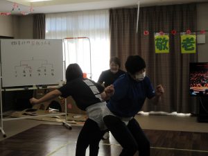 職員の出し物は、尻相撲をしました!男性職員がやっぱり強かったです!(^^)!