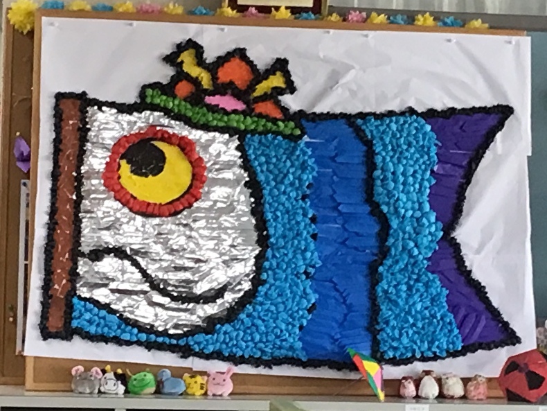皆で協力して、1m × 1.5m位の大きな鯉のぼりが出来上がりました。