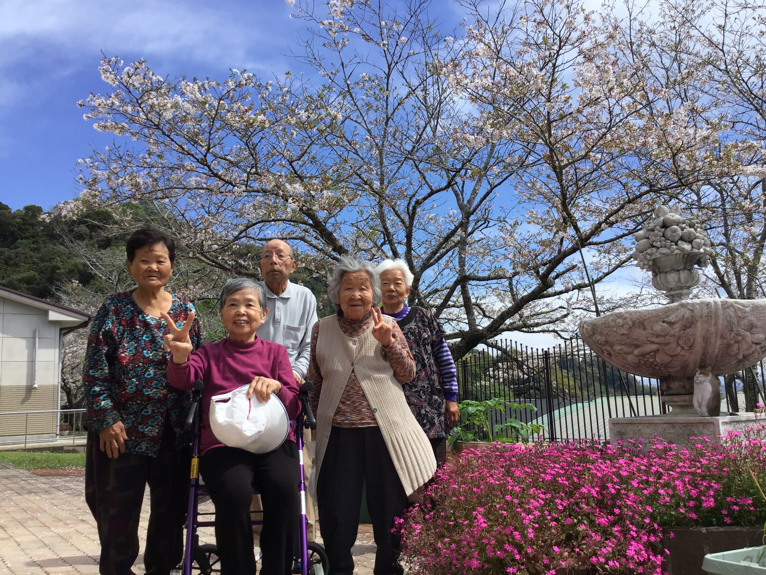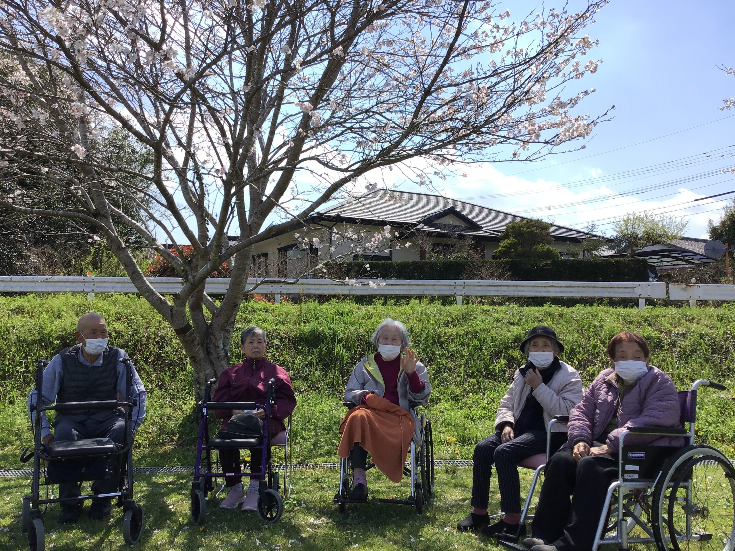 さくら苑の園庭にもキレイな桜が咲いており、天気の良い日には機能訓練を兼ねて散歩しました。