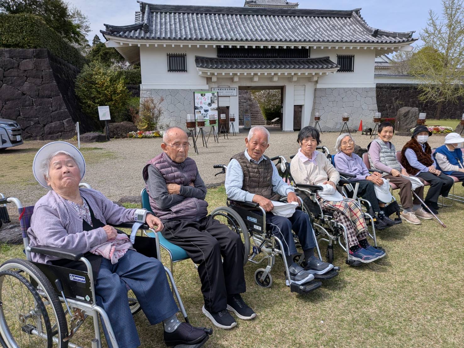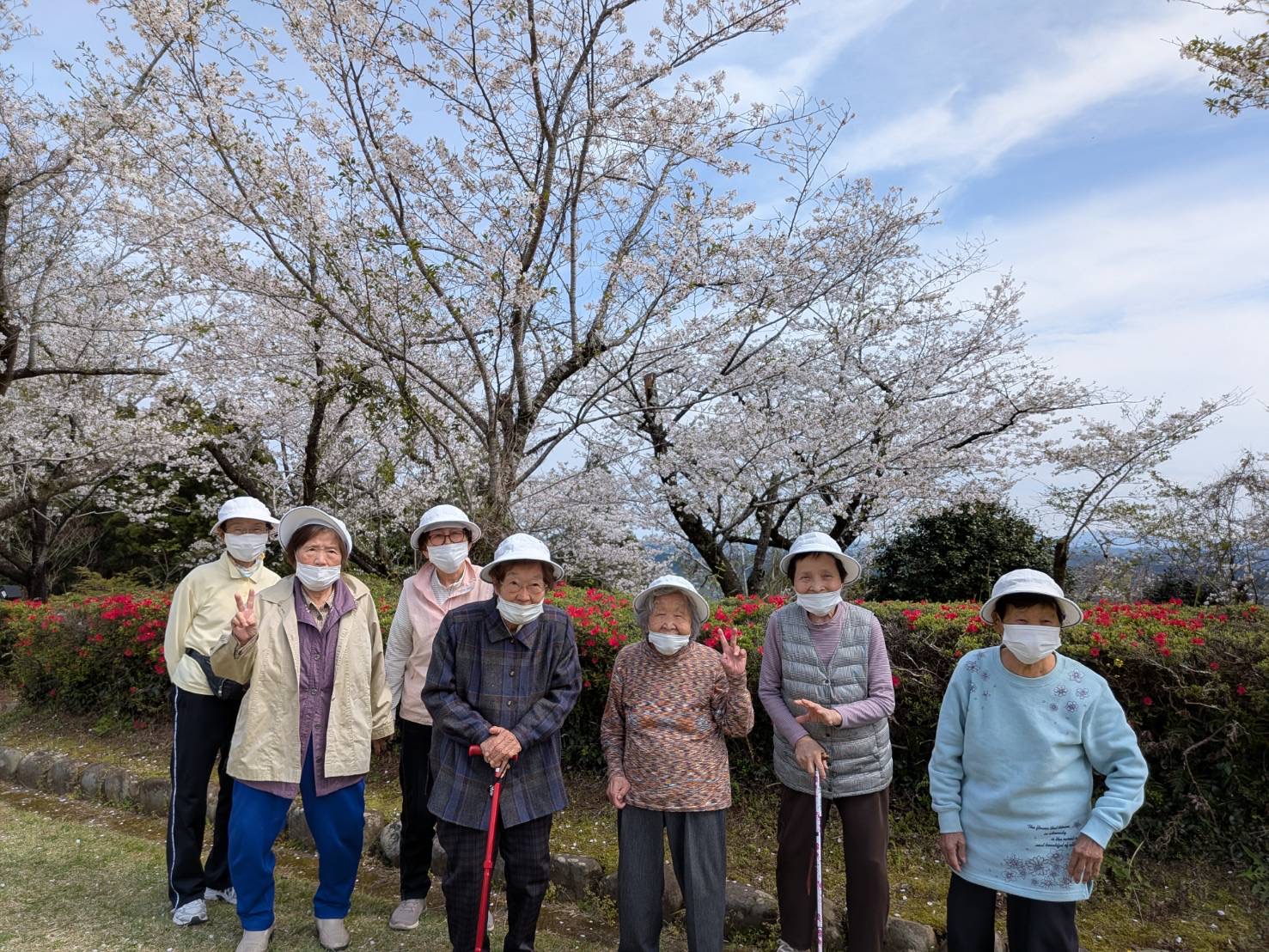 天ヶ城へは、次の日が雨予報だった為、全員参加で行ってきました。坂を上がる道のりも沢山の桜が咲いており、車内では「わ〜キレイやねー。来れて良かった〜」と喜ばれていました。