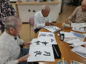 🖌何枚も練習し、お互いに「どっちがいいやろうかね」と見比べました。