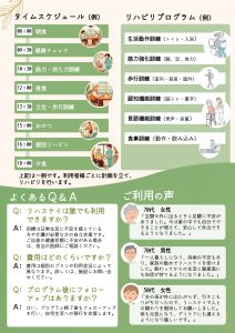 入所後は自宅生活に戻るために必要な動作を取り戻し、家族と共に安心して過ごせる未来を目指します。