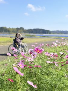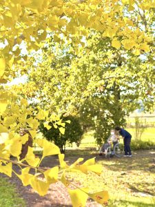 サンフローラの庭や周囲ではイチョウが風に揺れ、コスモスは空へ向かって伸び、季節が静かにすすんでいきます。