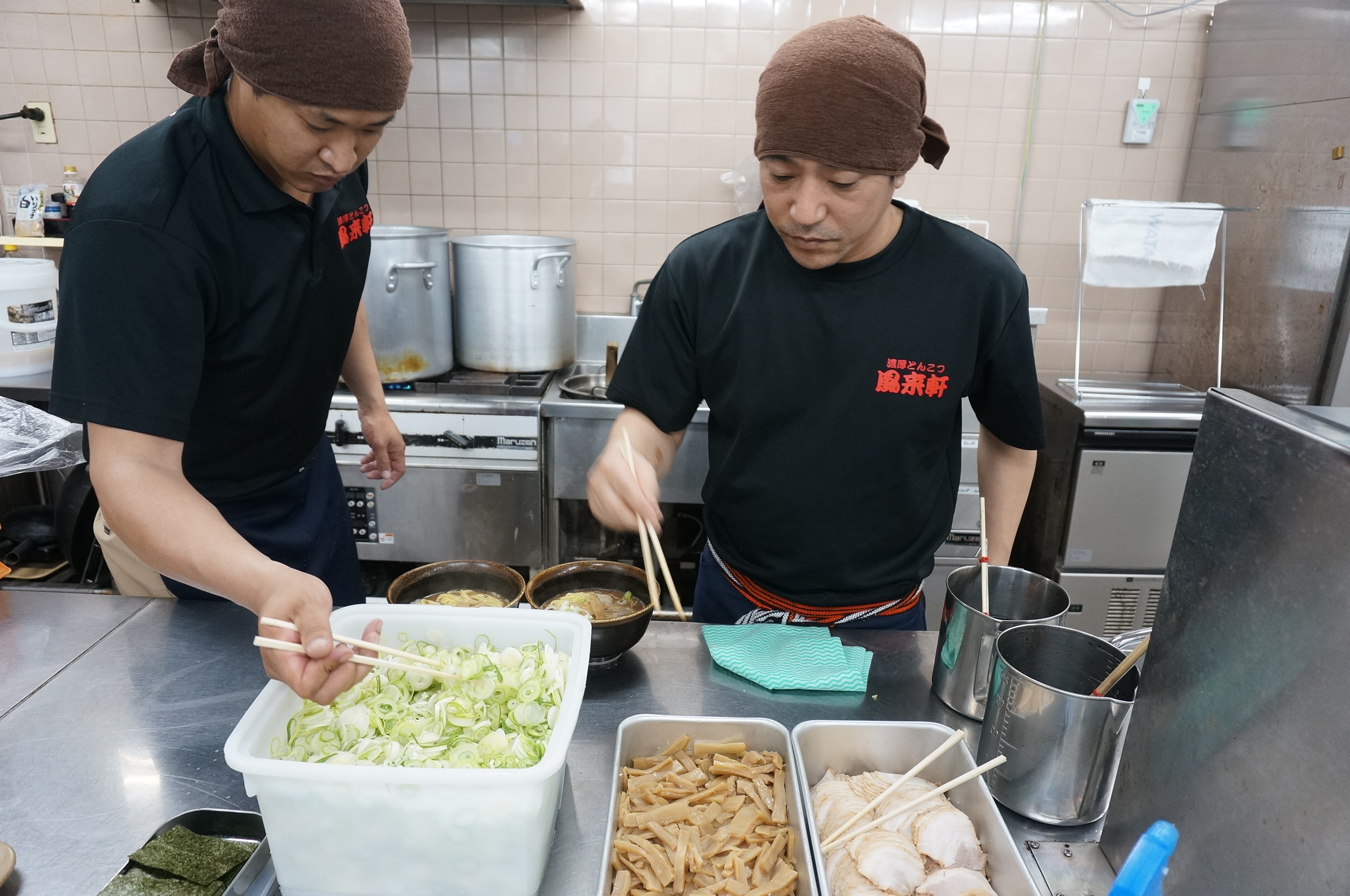 昼食時、皆様ご存知の「風来軒」様にお越し頂き、